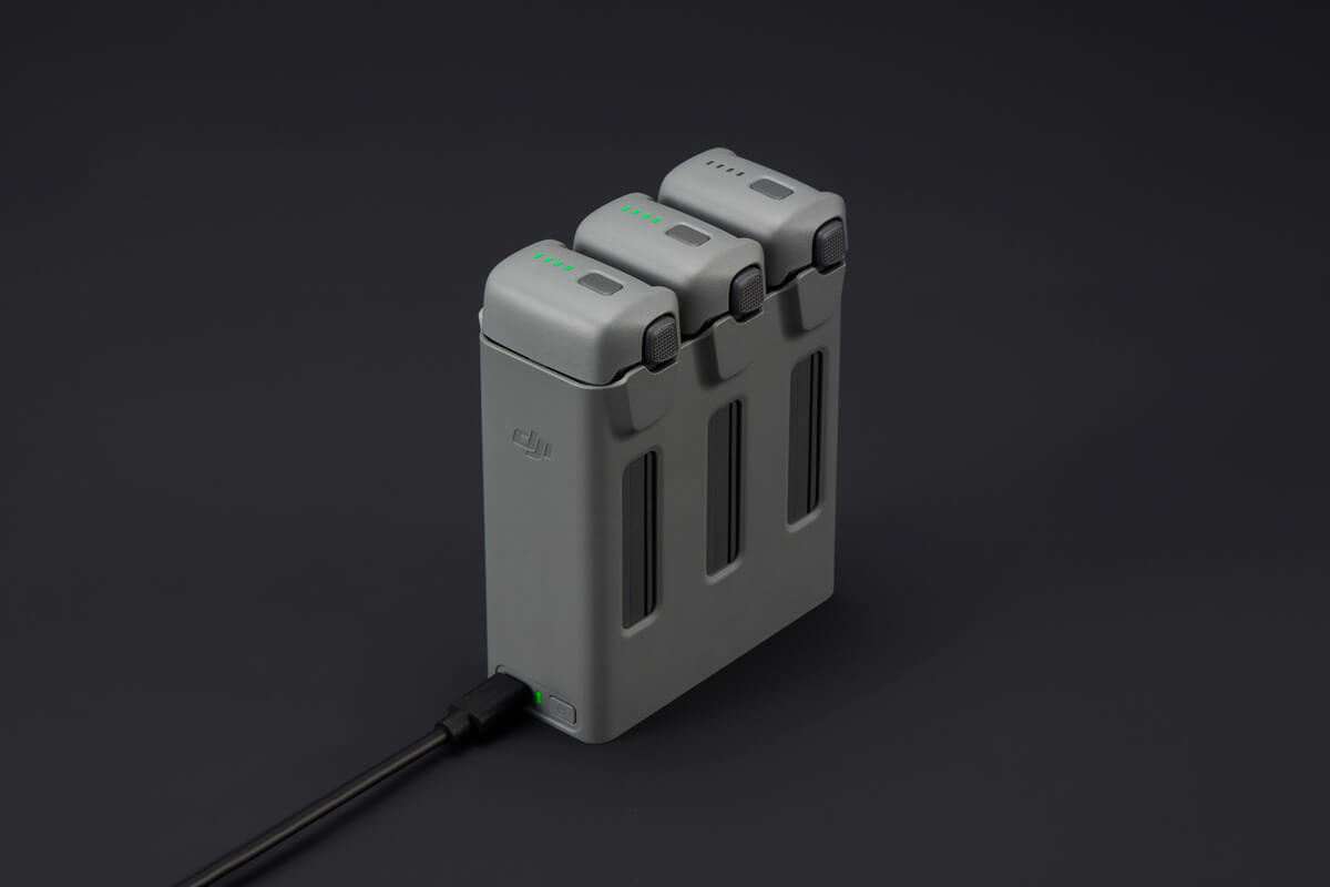 Sem o hub, cada bateria precisa ser carregada individualmente via USB-C, o que aumenta bastante o tempo de inatividade em campo. Com o hub, três baterias são carregadas em sequência automática, mantendo você voando com o mínimo de espera.