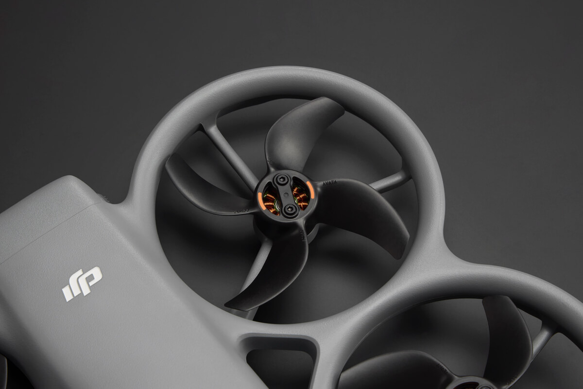 - Design otimizado para voo silencioso e eficiente (nível de ruído do Avata 360: ~81 dB)